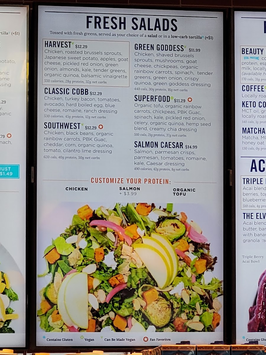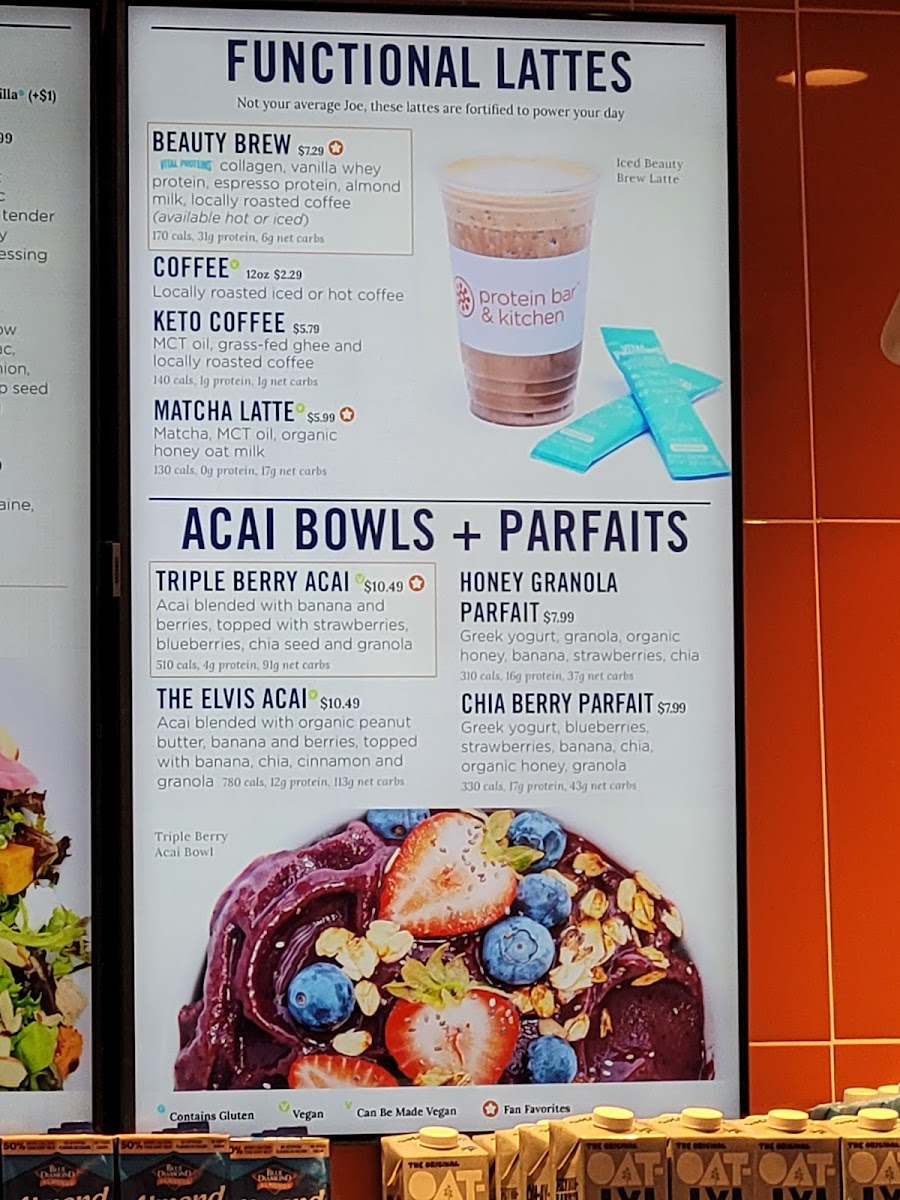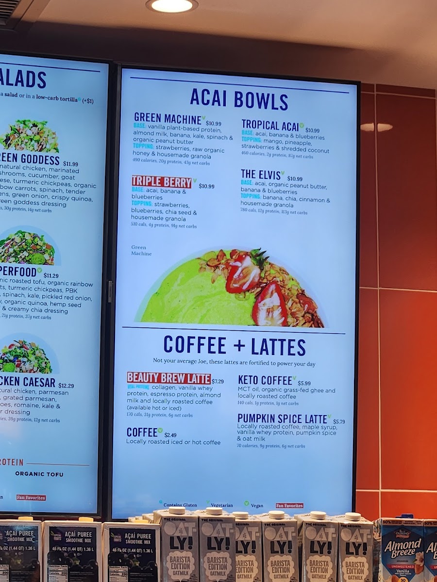 Nestled at 3920w N Terminal Dr in Salt Lake City’s airport, Protein Bar & Kitchen presents a vibrant menu for health-conscious travelers. Whether you’re in the mood for an energizing Acai Bowl, like the refreshing Green Machine or indulgent Elvis, each priced at $10.99, you'll find a delightful mix that caters to your taste and nutritional needs.
