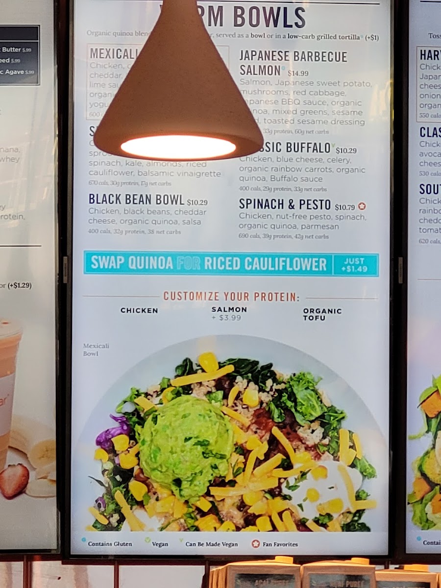- Rm Bowls: Dive into creations such as the Japanese Barbecue Salmon or Black Bean Bowl, ranging from $10.29 to $14.99.